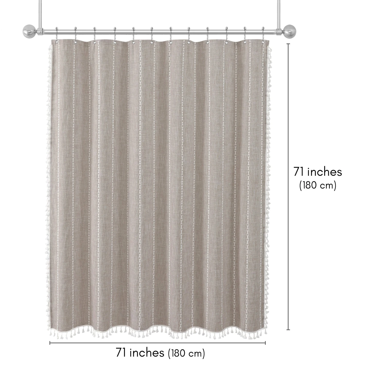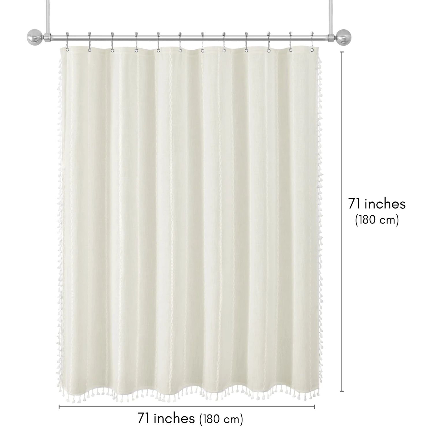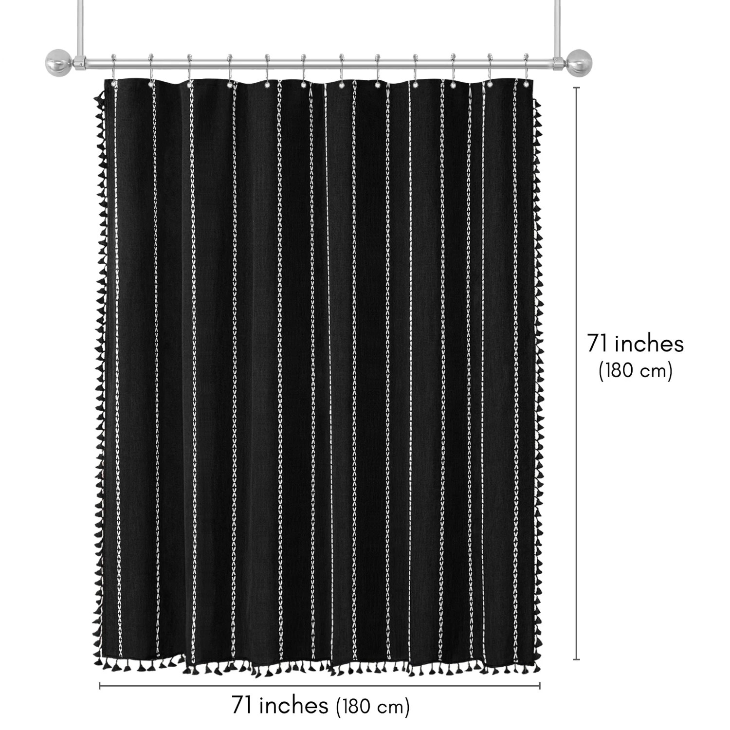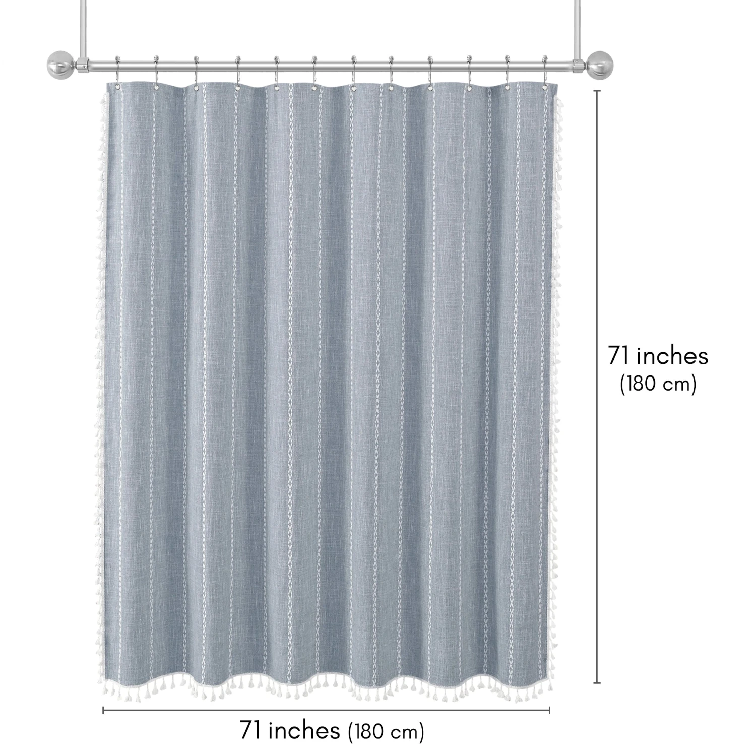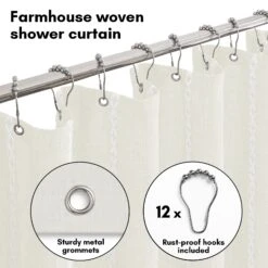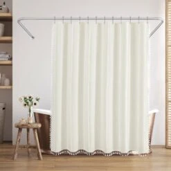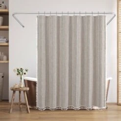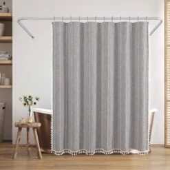 Make a bold statement in your bathroom with this textured woven linen shower curtain. The pop of color, vertical stitched detailing, and tassel accents add subtle depth and a modern feel, elevating your space instantly. Whether you’re tackling the morning madness or winding down with your favorite playlist, this bath curtain is crafted from water-resistant material, easy to hang, a breeze to wipe clean, and impossible not to love. Perfect for anyone looking to give their space a quick refresh, it’s a stylish and practical bathroom shower curtain that makes even everyday routines feel a little more enjoyable.