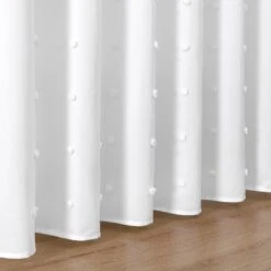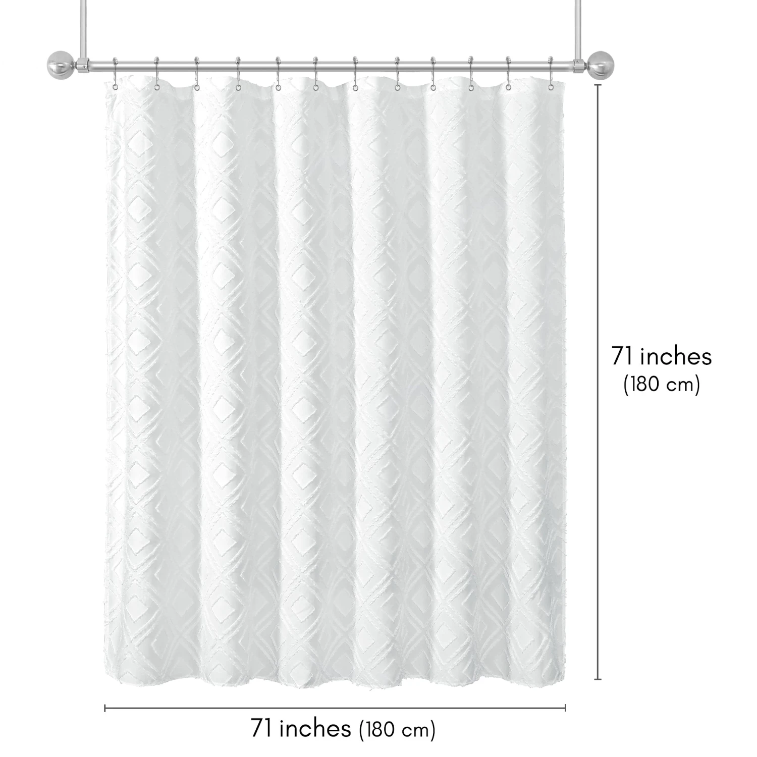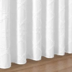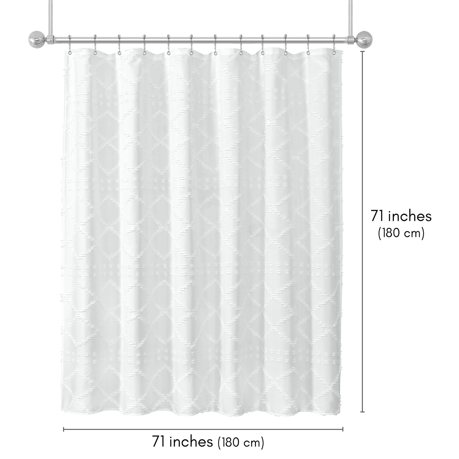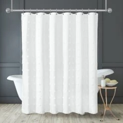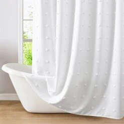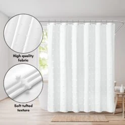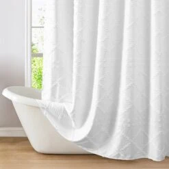 Make a bold statement in your bathroom with this textured woven linen shower curtain. The classic white color, textured patterns, vertical stitched detailing, and tassel accents add subtle depth and a modern feel, elevating your space instantly. Whether you’re tackling the morning madness or winding down with your favorite playlist, this bath curtain is crafted from water-resistant material, easy to hang, a breeze to wipe clean, and impossible not to love. Perfect for anyone looking to give their space a quick refresh, it’s a stylish and practical bathroom shower curtain that makes even everyday routines feel a little more enjoyable.