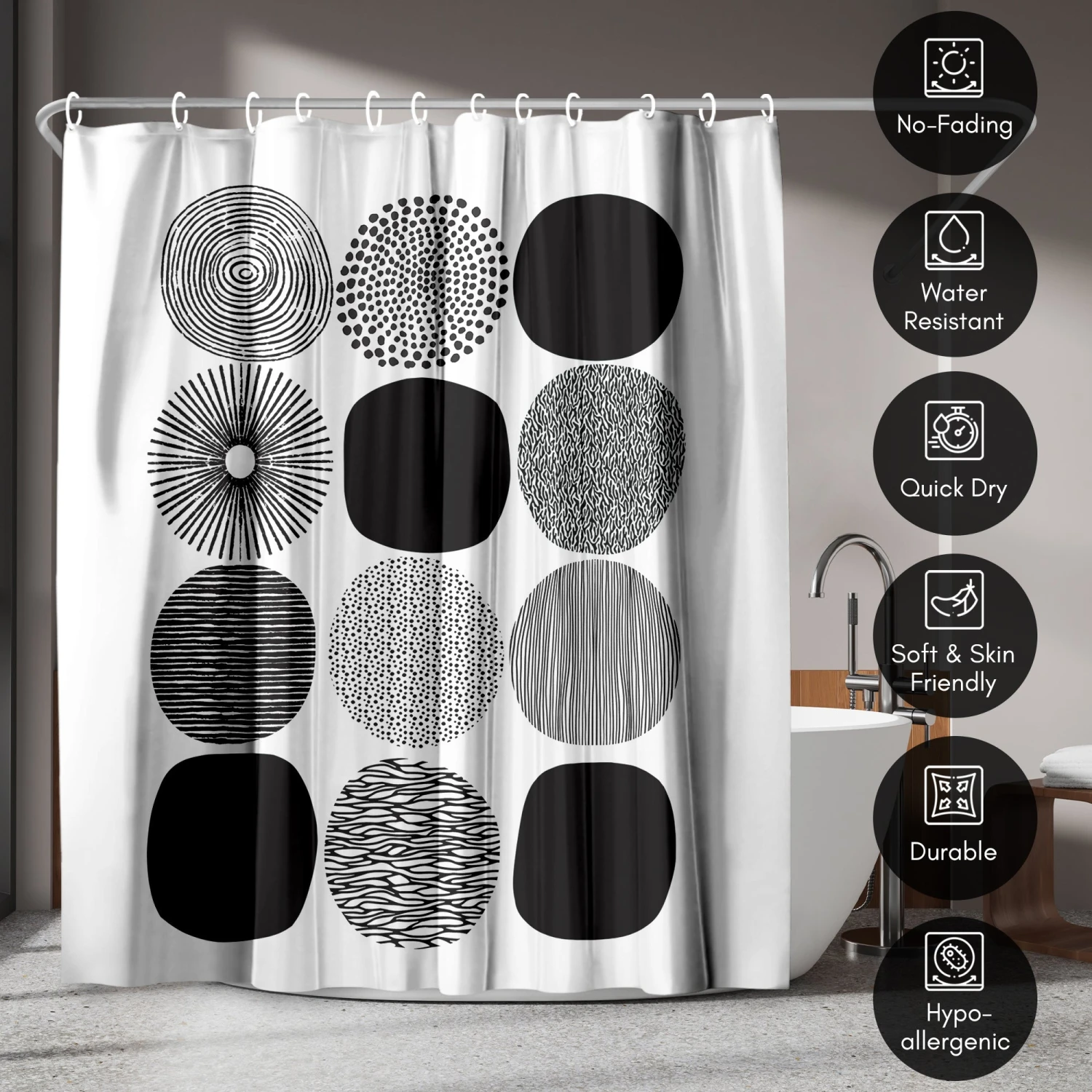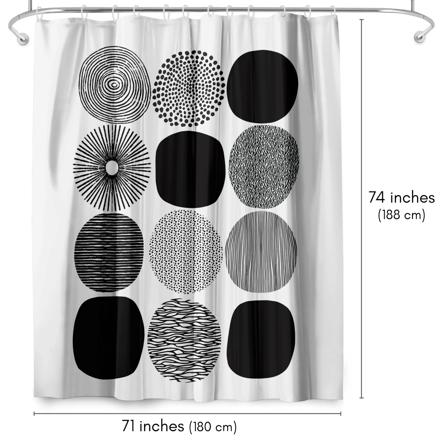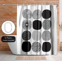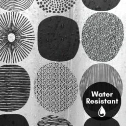 Bring a sense of calm and creativity to your bathroom with this abstract shower curtain designed by Lisa Nohren. A grid of bold black circles filled with hand-drawn patterns creates a relaxed, modern feel that instantly transforms your space. Whether you’re tackling the morning madness or winding down with your favorite playlist, this bath curtain is crafted from water-resistant material, easy to hang, a breeze to wipe clean, and impossible not to love. Perfect for anyone looking to give their space a quick refresh, it’s a stylish and practical bathroom shower curtain that makes even everyday routines feel a little more enjoyable.