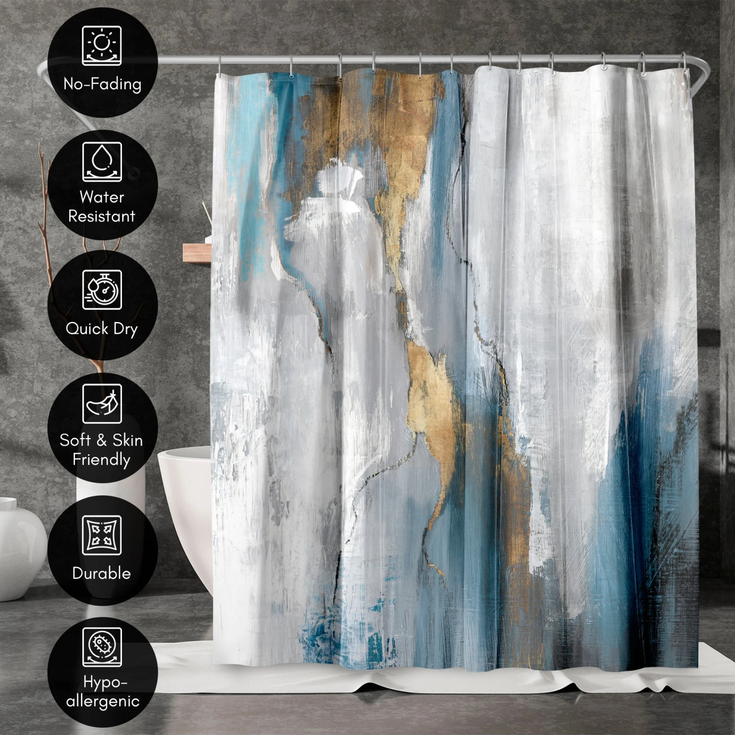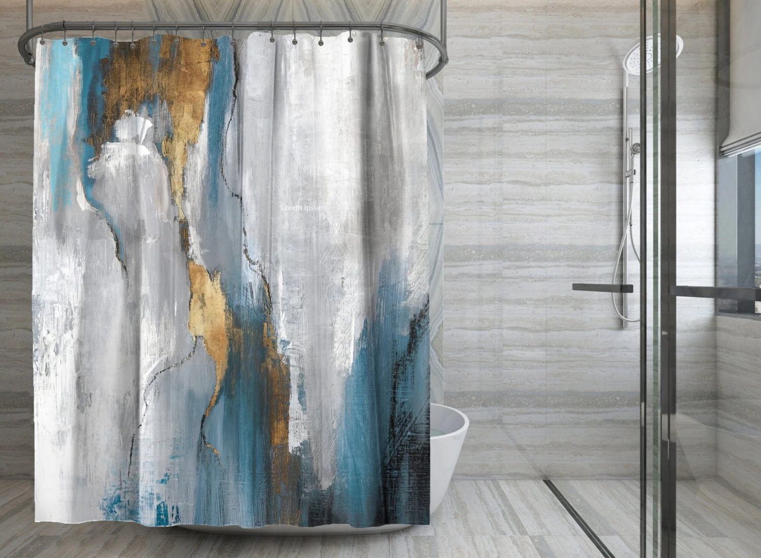 Bring a sense of calm and creativity to your bathroom with this abstract shower curtain designed by PI Creative Art. Bold strokes of slate grey, deep blue, and rich gold create a relaxed, modern feel that instantly transforms your space. Whether you’re tackling the morning madness or winding down with your favorite playlist, this bath curtain is crafted from water-resistant material, easy to hang, a breeze to wipe clean, and impossible not to love. Perfect for anyone looking to give their space a quick refresh, it’s a stylish and practical bathroom shower curtain that makes even everyday routines feel a little more enjoyable.