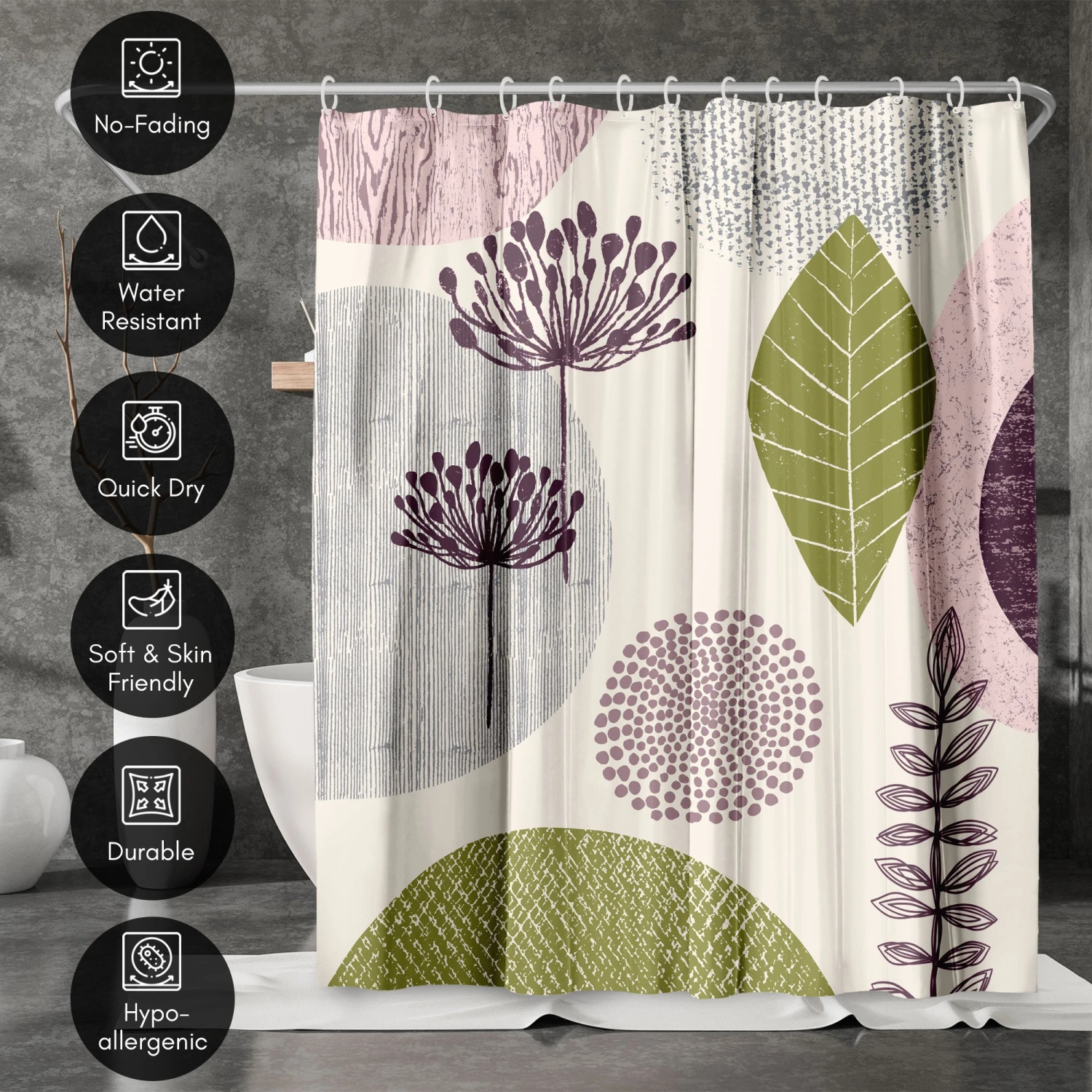Bring a sense of calm and creativity to your bathroom with this bold, botanical shower curtain designed by Lisa Nohren. Textured florals and foliage in sage green, mauve, and charcoal create a relaxed, modern feel that instantly transforms your space. Whether you’re tackling the morning madness or winding down with your favorite playlist, this bath curtain is crafted from water-resistant material, easy to hang, a breeze to wipe clean, and impossible not to love. Perfect for anyone looking to give their space a quick refresh, it’s a stylish and practical bathroom shower curtain that makes even everyday routines feel a little more enjoyable.