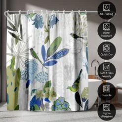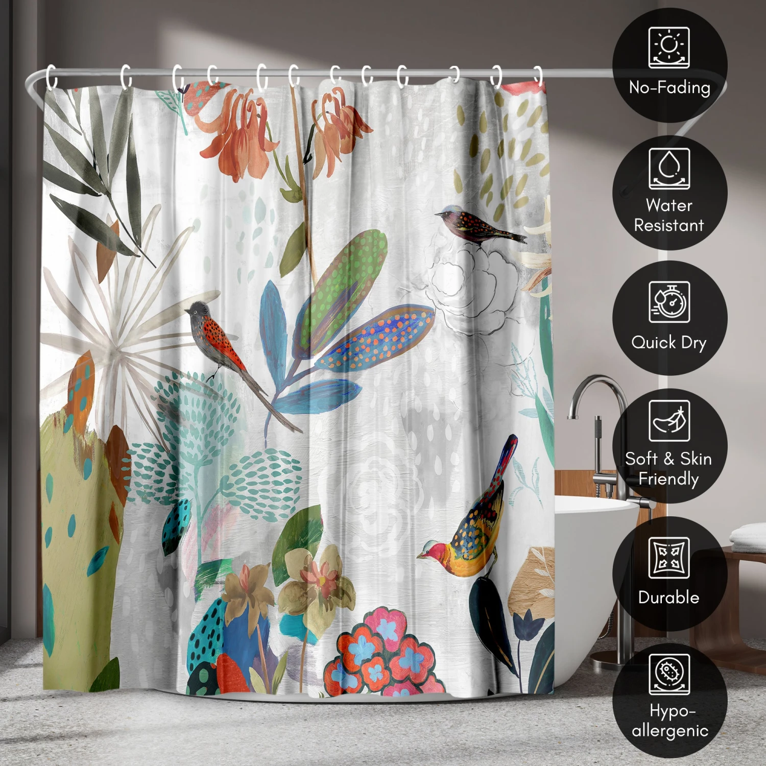 Bring a sense of calm and creativity to your bathroom with this fresh, botanical-inspired shower curtain. Vibrant colors and bird illustrations create a relaxed, modern feel that instantly transforms your space. Whether you’re tackling the morning madness or winding down with your favorite playlist, this bath curtain is crafted from water-resistant material, easy to hang, a breeze to wipe clean, and impossible not to love. Perfect for anyone looking to give their space a quick refresh, it’s a stylish and practical bathroom shower curtain that makes even everyday routines feel a little more enjoyable.