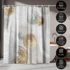 Bring a sense of calm and creativity to your bathroom with this sleek, abstract shower curtain designed by PI Creative Art. Circular brushstrokes in silver, taupe, and soft gold colors create a relaxed, modern feel that instantly transforms your space. Whether you’re tackling the morning madness or winding down with your favorite playlist, this bath curtain is crafted from water-resistant material, easy to hang, a breeze to wipe clean, and impossible not to love. Perfect for anyone looking to give their space a quick refresh, it’s a stylish and practical bathroom shower curtain that makes even everyday routines feel a little more enjoyable.