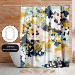 Bring a sense of calm and creativity to your bathroom with this expressive, abstract shower curtain designed by Charlotte Winter. Splashes of navy blue, deep yellow, blush pink, and mint green create a relaxed, modern feel that instantly transforms your space. Whether you’re tackling the morning madness or winding down with your favorite playlist, this bath curtain is crafted from water-resistant material, easy to hang, a breeze to wipe clean, and impossible not to love. Perfect for anyone looking to give their space a quick refresh, it’s a stylish and practical bathroom shower curtain that makes even everyday routines feel a little more enjoyable.