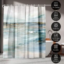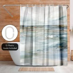 Bring a sense of calm and creativity to your bathroom with this serene, landscape-inspired shower curtain designed by PI Creative Art. Soft, layered brushstrokes in coastal blues, sandy neutrals, and misty greys create a relaxed, modern feel that instantly transforms your space. Whether you’re tackling the morning madness or winding down with your favorite playlist, this bath curtain is crafted from water-resistant material, easy to hang, a breeze to wipe clean, and impossible not to love. Perfect for anyone looking to give their space a quick refresh, it’s a stylish and practical bathroom shower curtain that makes even everyday routines feel a little more enjoyable.