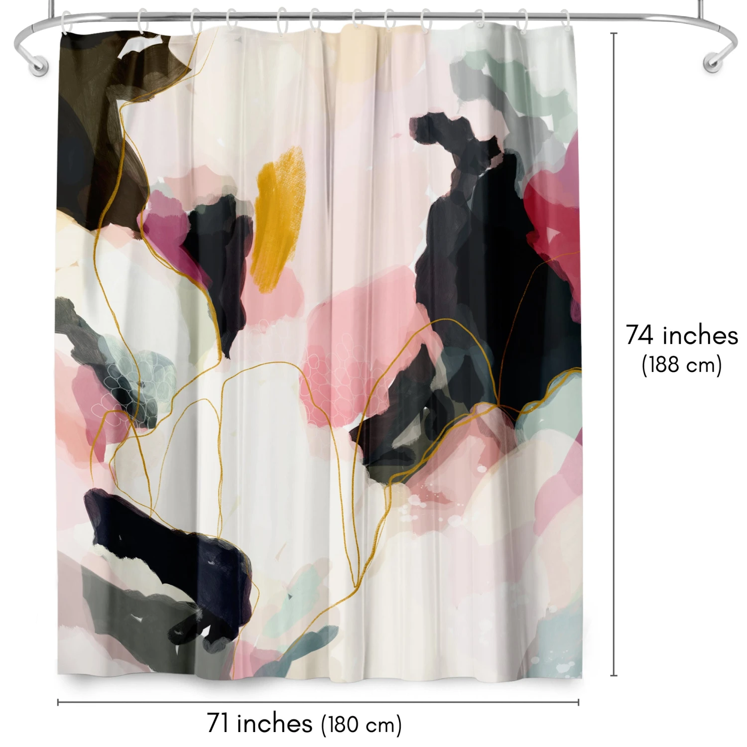 Bring a sense of calm and creativity to your bathroom with this expressive, abstract shower curtain designed by Louise Robinson. Bold strokes in blush, black, and gold with soft sage accents create a relaxed, modern feel that instantly transforms your space. Whether you’re tackling the morning madness or winding down with your favorite playlist, this bath curtain is crafted from water-resistant material, easy to hang, a breeze to wipe clean, and impossible not to love. Perfect for anyone looking to give their space a quick refresh, it’s a stylish and practical bathroom shower curtain that makes even everyday routines feel a little more enjoyable.