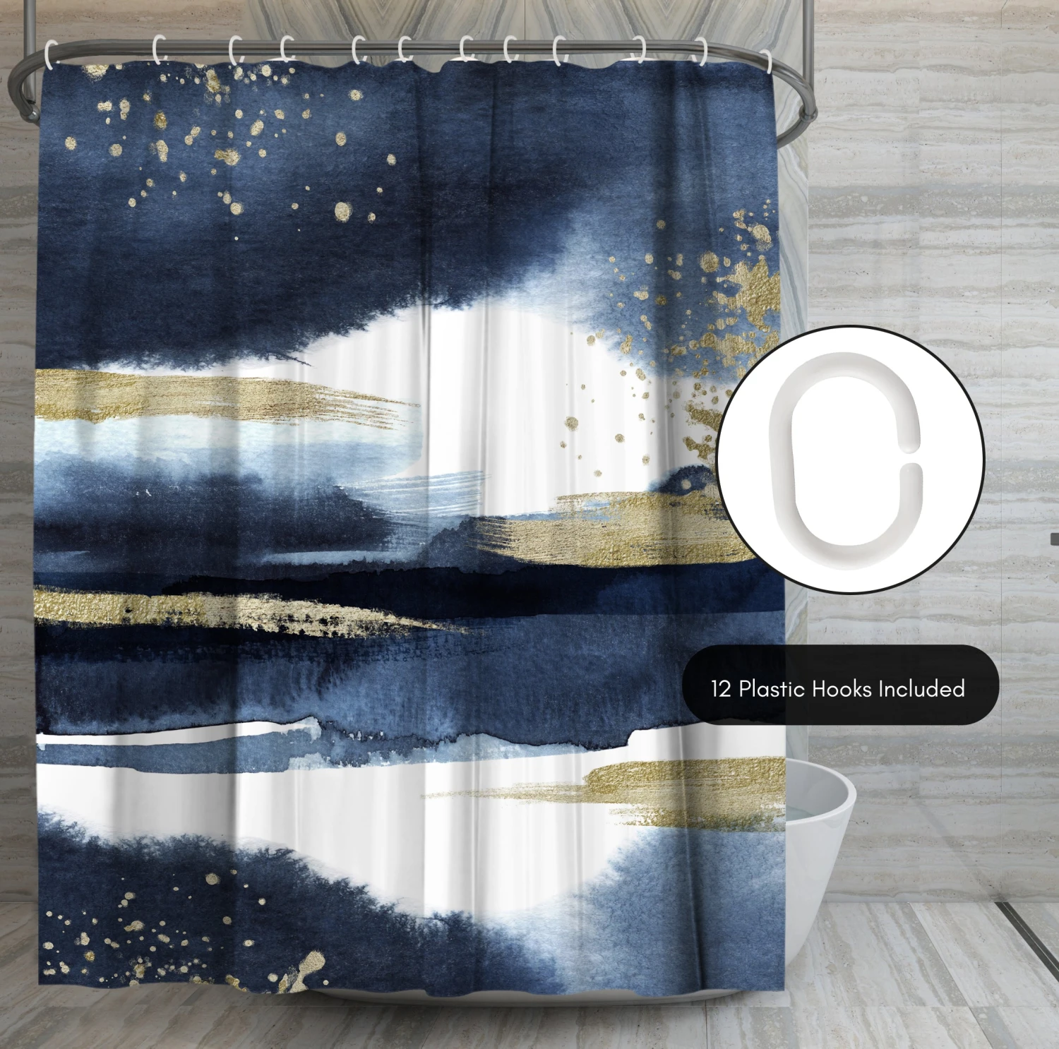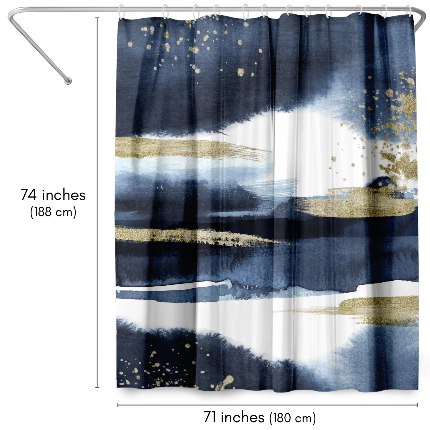 Bring a sense of calm and creativity to your bathroom with this stunning, abstract shower curtain designed by Lisa Nohren. Bold navy brushstrokes and shimmering gold accents create a relaxed, modern feel that instantly transforms your space. Whether you’re tackling the morning madness or winding down with your favorite playlist, this bath curtain is crafted from water-resistant material, easy to hang, a breeze to wipe clean, and impossible not to love. Perfect for anyone looking to give their space a quick refresh, it’s a stylish and practical bathroom shower curtain that makes even everyday routines feel a little more enjoyable.