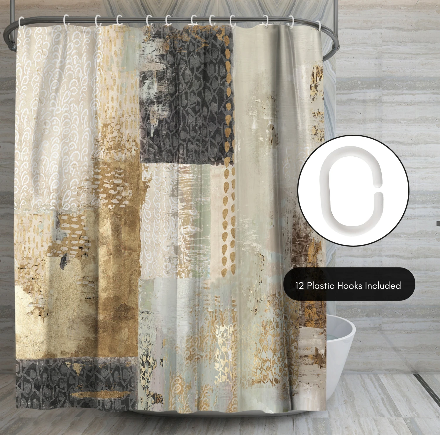 Bring a sense of calm and creativity to your bathroom with this bold, abstract shower curtain designed by PI Creative Art. Vertical distressed textures of earthy tones of taupe, gold, and charcoal create a relaxed, modern feel that instantly transforms your space. Whether you’re tackling the morning madness or winding down with your favorite playlist, this bath curtain is crafted from water-resistant material, easy to hang, a breeze to wipe clean, and impossible not to love. Perfect for anyone looking to give their space a quick refresh, it’s a stylish and practical bathroom shower curtain that makes even everyday routines feel a little more enjoyable.