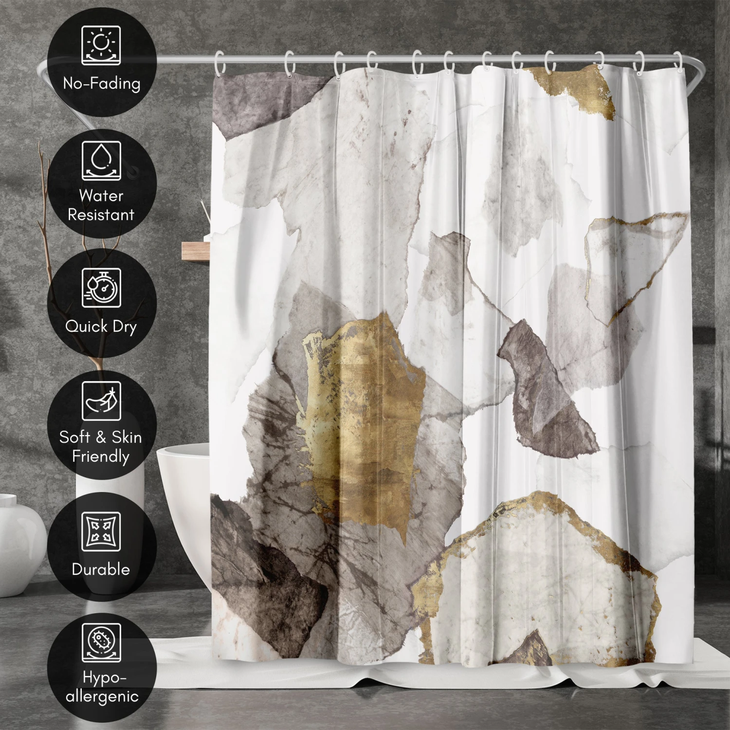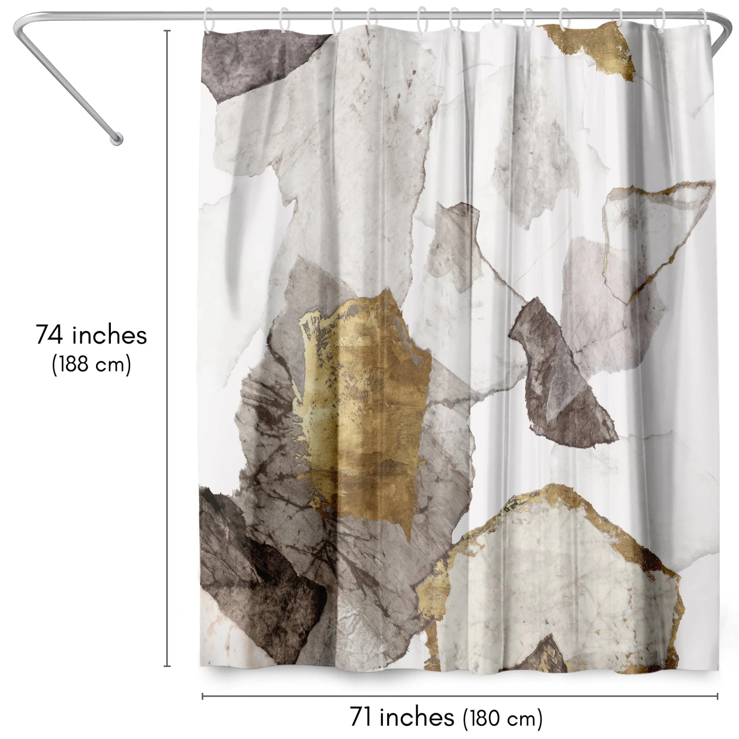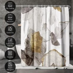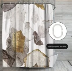 Bring a sense of calm and creativity to your bathroom with this bold, abstract shower curtain designed by PI Creative Art. Abstract forms in soft taupe, charcoal, and brushed gold tones create a relaxed, modern feel that instantly transforms your space. Whether you’re tackling the morning madness or winding down with your favorite playlist, this bath curtain is crafted from water-resistant material, easy to hang, a breeze to wipe clean, and impossible not to love. Perfect for anyone looking to give their space a quick refresh, it’s a stylish and practical bathroom shower curtain that makes even everyday routines feel a little more enjoyable.