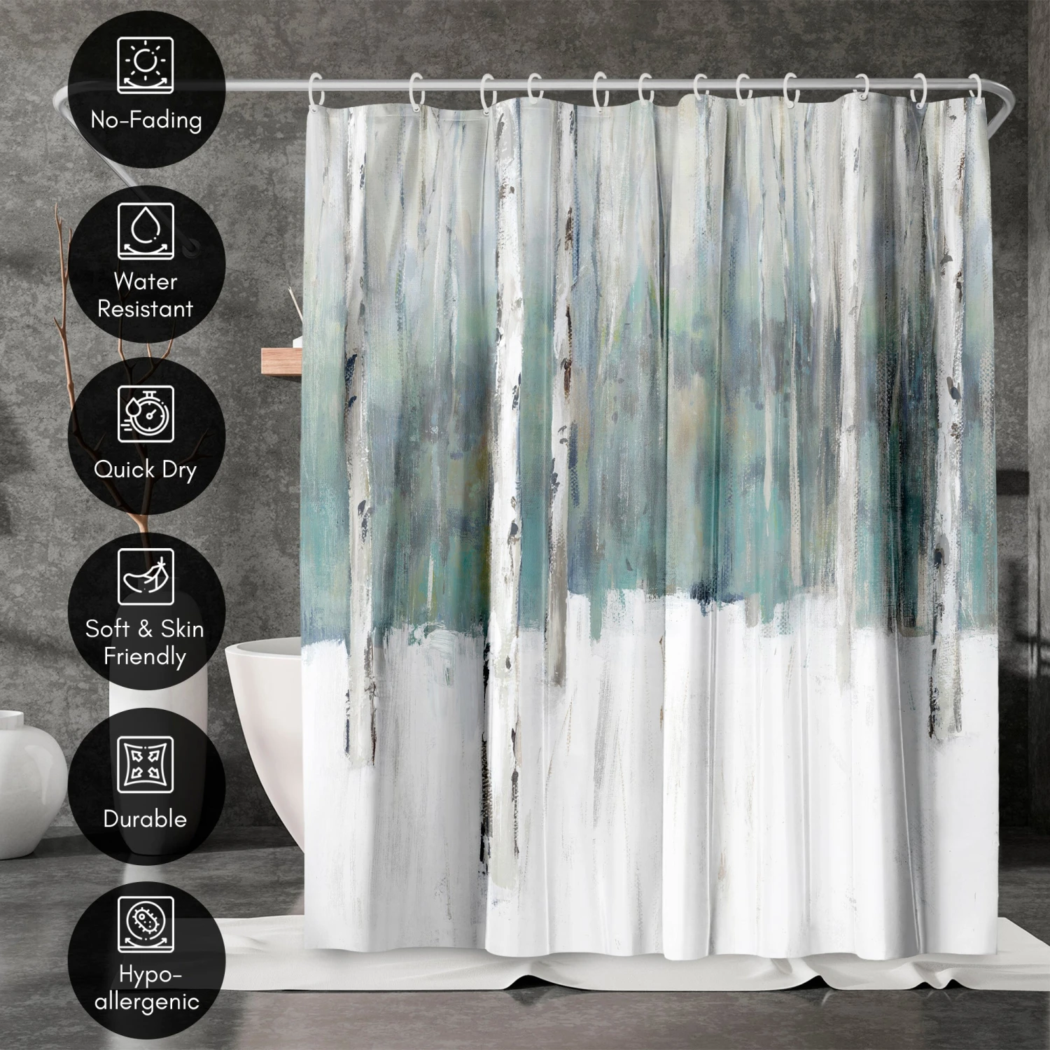 Bring a sense of calm and creativity to your bathroom with this artistic, abstract shower curtain designed by PI Creative Art. Vertical strokes in soft whites, charcoal, and sage green create a relaxed, modern feel that instantly transforms your space. Whether you’re tackling the morning madness or winding down with your favorite playlist, this bath curtain is crafted from water-resistant material, easy to hang, a breeze to wipe clean, and impossible not to love. Perfect for anyone looking to give their space a quick refresh, it’s a stylish and practical bathroom shower curtain that makes even everyday routines feel a little more enjoyable.