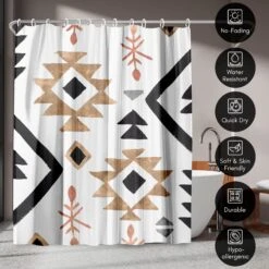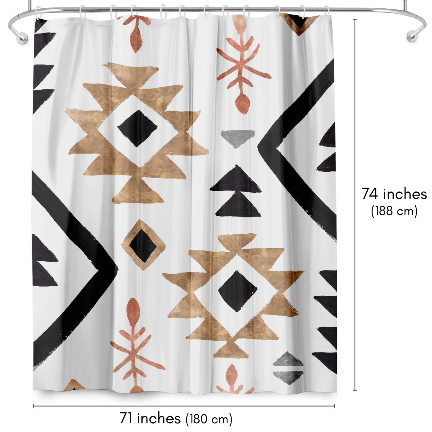 Bring a sense of calm and creativity to your bathroom with this bold, boho-inspired shower curtain designed by PI Creative Art. Geometric patterns in warm tan, rust, and deep black create a relaxed, modern feel that instantly transforms your space. Whether you’re tackling the morning madness or winding down with your favorite playlist, this bath curtain is crafted from water-resistant material, easy to hang, a breeze to wipe clean, and impossible not to love. Perfect for anyone looking to give their space a quick refresh, it’s a stylish and practical bathroom shower curtain that makes even everyday routines feel a little more enjoyable.
