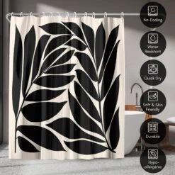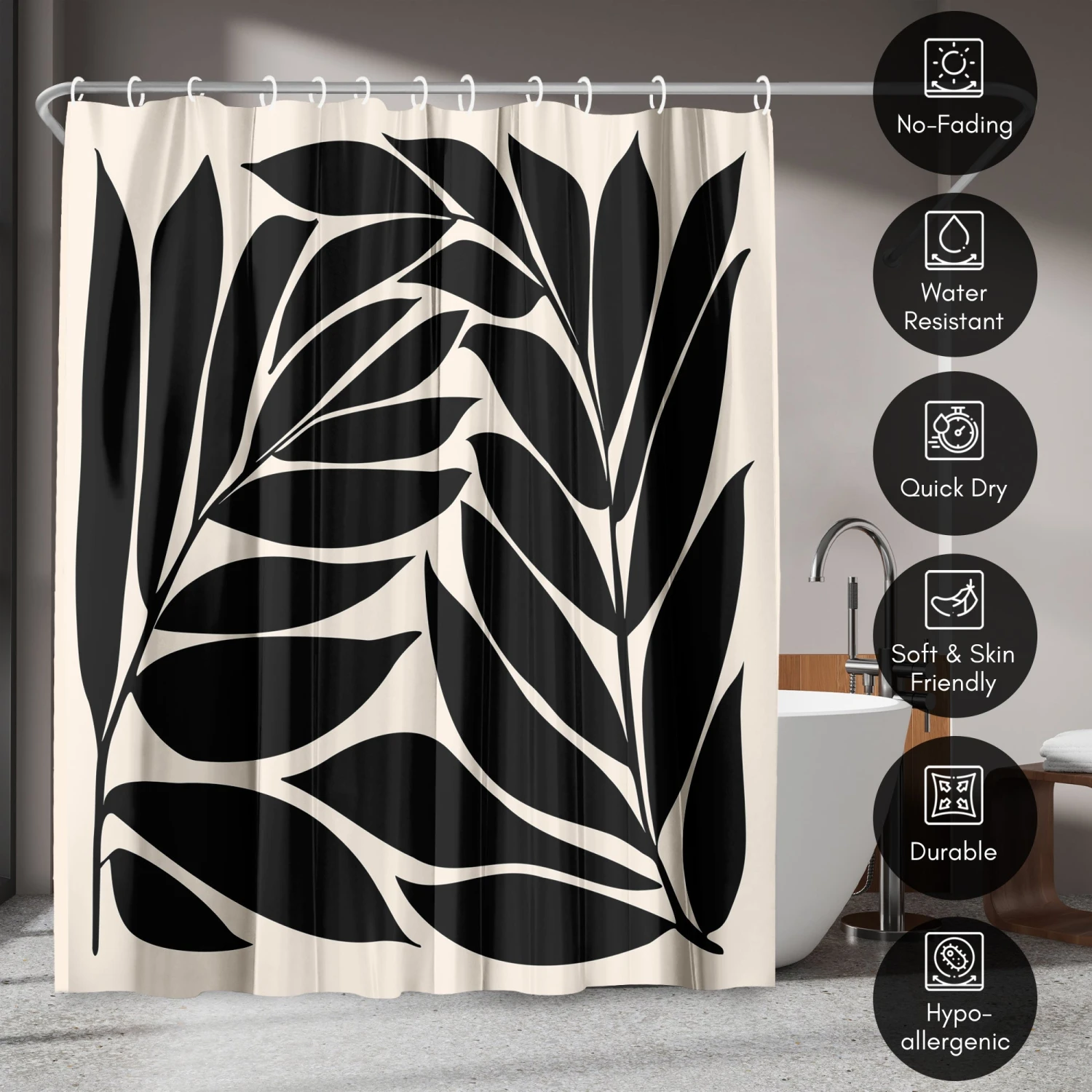 Bring a sense of calm and creativity to your bathroom with this bold shower curtain designed by Modern Tropical. Oversized black palm leaves on a warm ivory background create a relaxed, modern feel that instantly transforms your space. Whether you’re tackling the morning madness or winding down with your favorite playlist, this bath curtain is crafted from water-resistant material, easy to hang, a breeze to wipe clean, and impossible not to love. Perfect for anyone looking to give their space a quick refresh, it’s a stylish and practical bathroom shower curtain that makes even everyday routines feel a little more enjoyable.