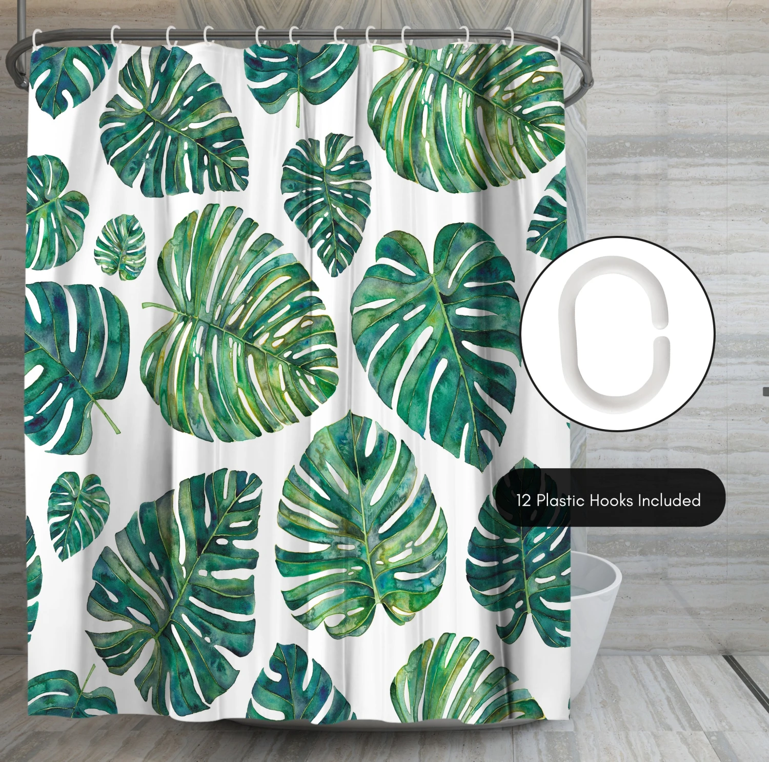 Bring a sense of calm and creativity to your bathroom with this bold, tropical-inspired shower curtain designed by Elena O’Neill. Oversized monstera leaves in rich emerald and jade tones create a relaxed, modern feel that instantly transforms your space. Whether you’re tackling the morning madness or winding down with your favorite playlist, this bath curtain is crafted from water-resistant material, easy to hang, a breeze to wipe clean, and impossible not to love. Perfect for anyone looking to give their space a quick refresh, it’s a stylish and practical bathroom shower curtain that makes even everyday routines feel a little more enjoyable.