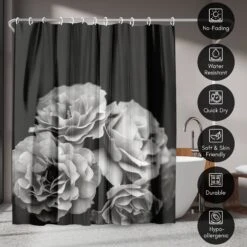 Bring a sense of calm and creativity to your bathroom with this moody, floral shower curtain designed by Chaos & Wonder Design. Soft-focus black-and-white roses bloom across a deep charcoal backdrop, creating a relaxed, modern feel that instantly transforms your space. Whether you’re tackling the morning madness or winding down with your favorite playlist, this bath curtain is crafted from water-resistant material, easy to hang, a breeze to wipe clean, and impossible not to love. Perfect for anyone looking to give their space a quick refresh, it’s a stylish and practical bathroom shower curtain that makes even everyday routines feel a little more enjoyable.