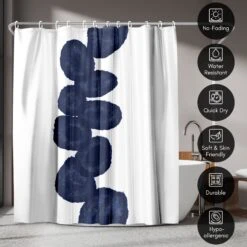 Bring a sense of calm and creativity to your bathroom with this abstract shower curtain designed by Chaos & Wonder Design. A vertical row of deep navy abstract dots on a white background creates a relaxed, modern feel that instantly transforms your space. Whether you’re tackling the morning madness or winding down with your favorite playlist, this bath curtain is crafted from water-resistant material, easy to hang, a breeze to wipe clean, and impossible not to love. Perfect for anyone looking to give their space a quick refresh, it’s a stylish and practical bathroom shower curtain that makes even everyday routines feel a little more enjoyable.