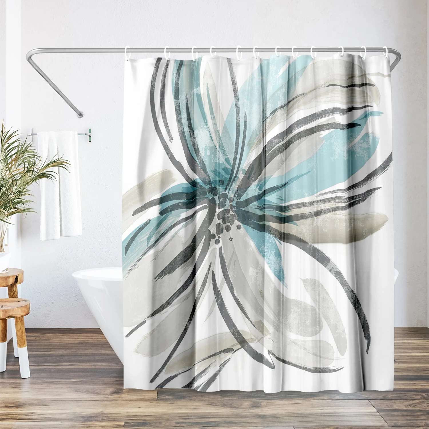 Bring a sense of calm and creativity to your bathroom with this stunning floral shower curtain designed by Pi Creative Art. Sweeping brushstrokes in muted grey, soft beige, and pale blue create a relaxed, modern feel that instantly transforms your space. Whether you’re tackling the morning madness or winding down with your favorite playlist, this bath curtain is crafted from water-resistant material, easy to hang, a breeze to wipe clean, and impossible not to love. Perfect for anyone looking to give their space a quick refresh, it’s a stylish and practical bathroom shower curtain that makes even everyday routines feel a little more enjoyable.