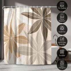 Bring a sense of calm and creativity to your bathroom with this botanical-inspired shower curtain designed by Modern Tropical. Overlapping botanical silhouettes in warm taupe, beige, and ivory tones create a relaxed, modern feel that instantly transforms your space. Whether you’re tackling the morning madness or winding down with your favorite playlist, this bath curtain is crafted from water-resistant material, easy to hang, a breeze to wipe clean, and impossible not to love. Perfect for anyone looking to give their space a quick refresh, it’s a stylish and practical bathroom shower curtain that makes even everyday routines feel a little more enjoyable.
