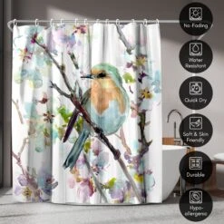 Bring a sense of calm and creativity to your bathroom with this vivid, nature-inspired shower curtain designed by Suren Nersisyan. Airy blossoms, pastel tones, a serene songbird, and a graceful robin create a relaxed, modern feel that instantly transforms your space. Whether you’re tackling the morning madness or winding down with your favorite playlist, this bath curtain is crafted from water-resistant material, easy to hang, a breeze to wipe clean, and impossible not to love. Perfect for anyone looking to give their space a quick refresh, it’s a stylish and practical bathroom shower curtain that makes even everyday routines feel a little more enjoyable.