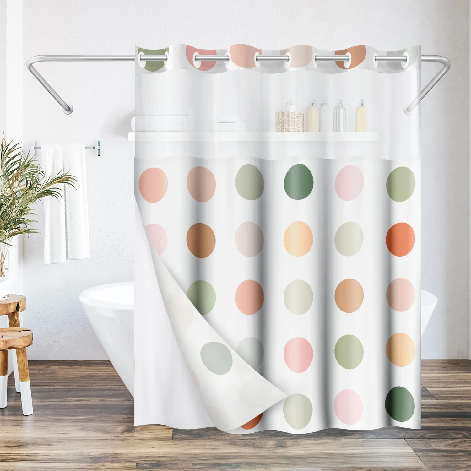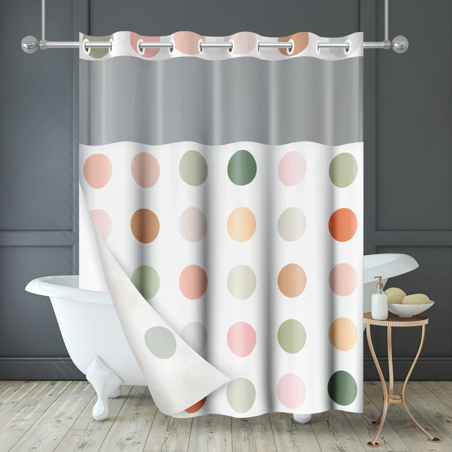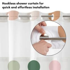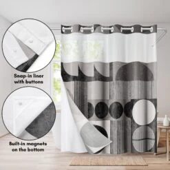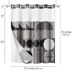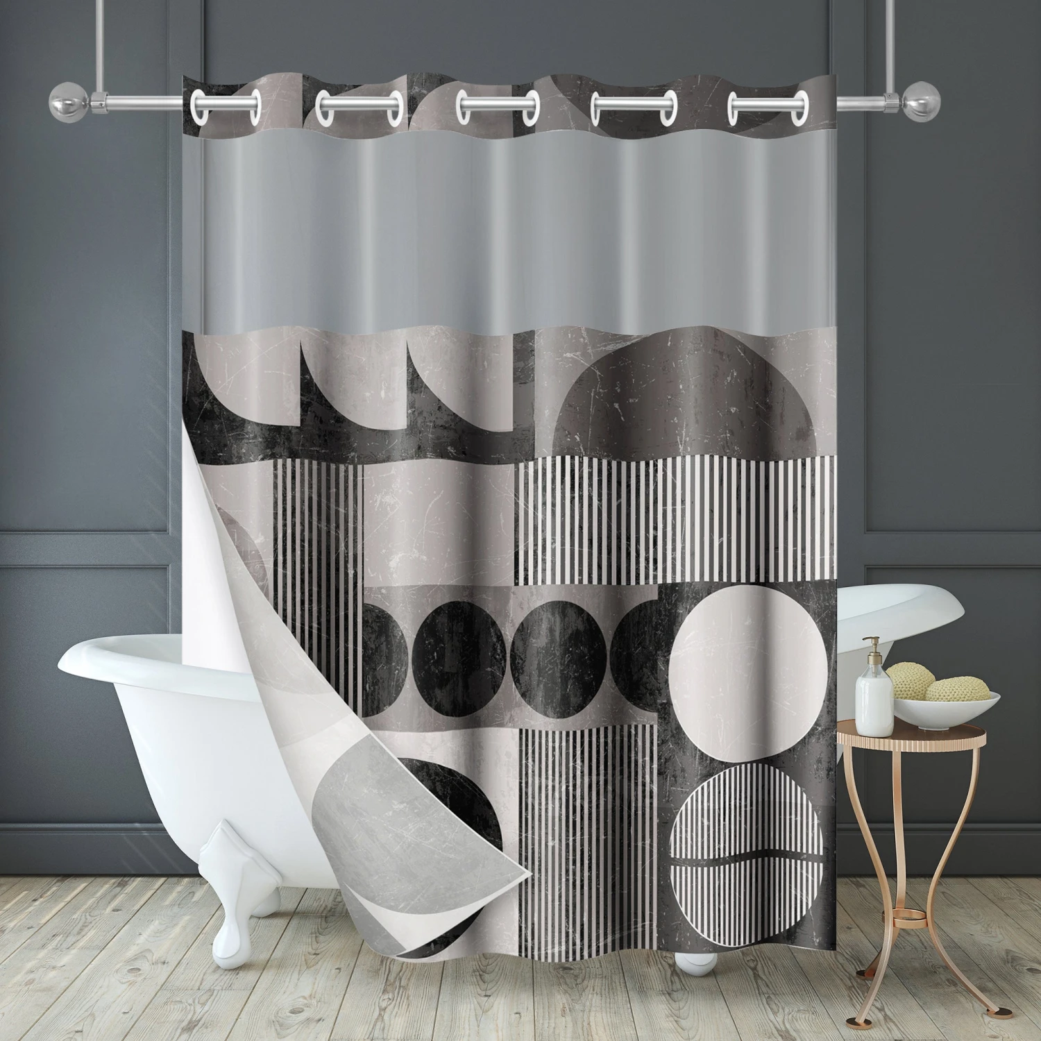 Make a bold statement in your bathroom with this sleek hookless shower curtain, complete with a sheer panel and snap-in liner. The modern abstract design and versatile tones elevate your space instantly. Whether you’re tackling the morning madness or winding down with your favorite playlist, this bath curtain is crafted from water-resistant material, easy to hang (no hooks required), a breeze to wipe clean, and impossible not to love. Perfect for anyone looking to give their space a quick refresh, it’s a stylish and practical bathroom shower curtain that makes even everyday routines feel a little more enjoyable.