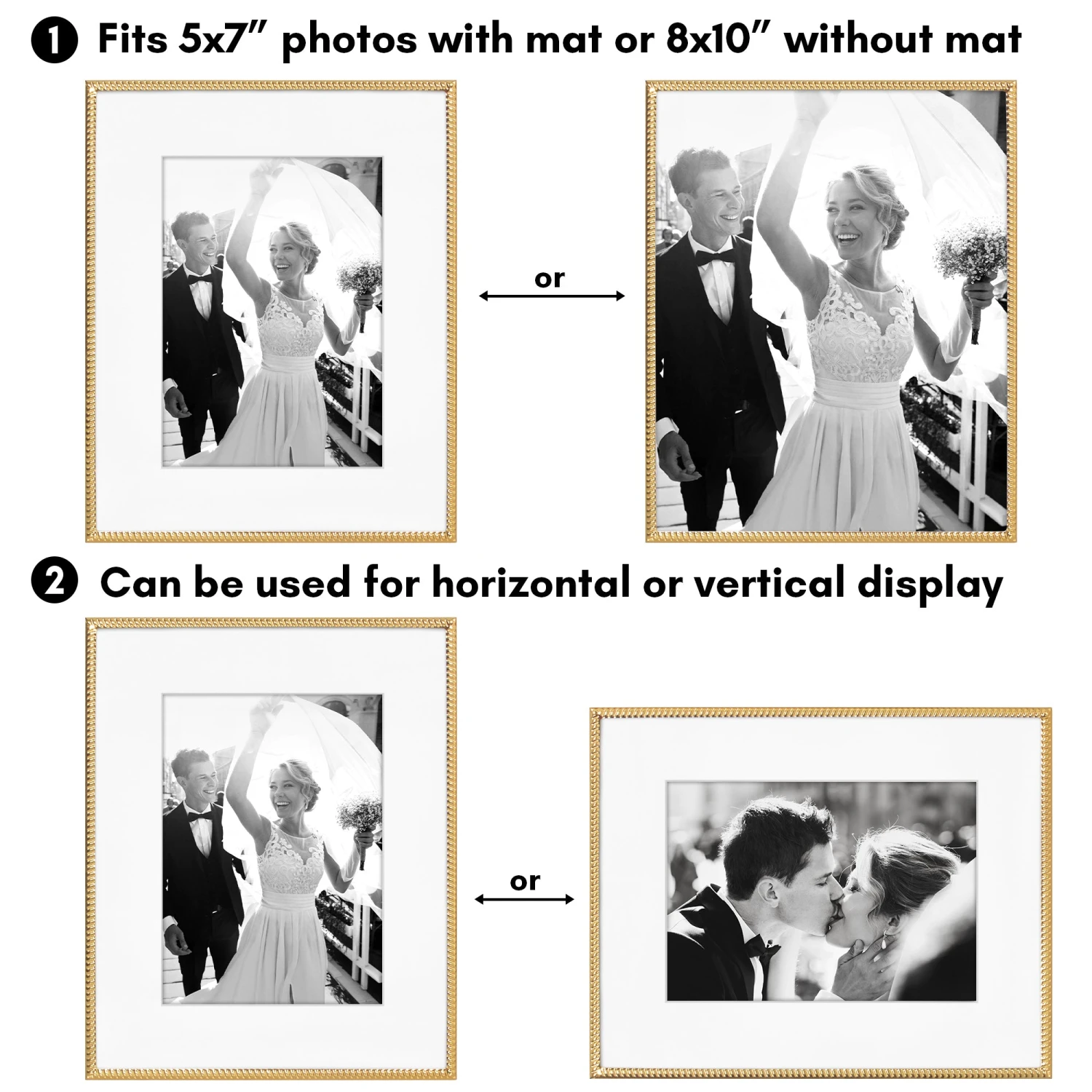 Americanflat Picture Frame with Mat | Rope-Style Textured Detailing | Shatter-Resistant Glass