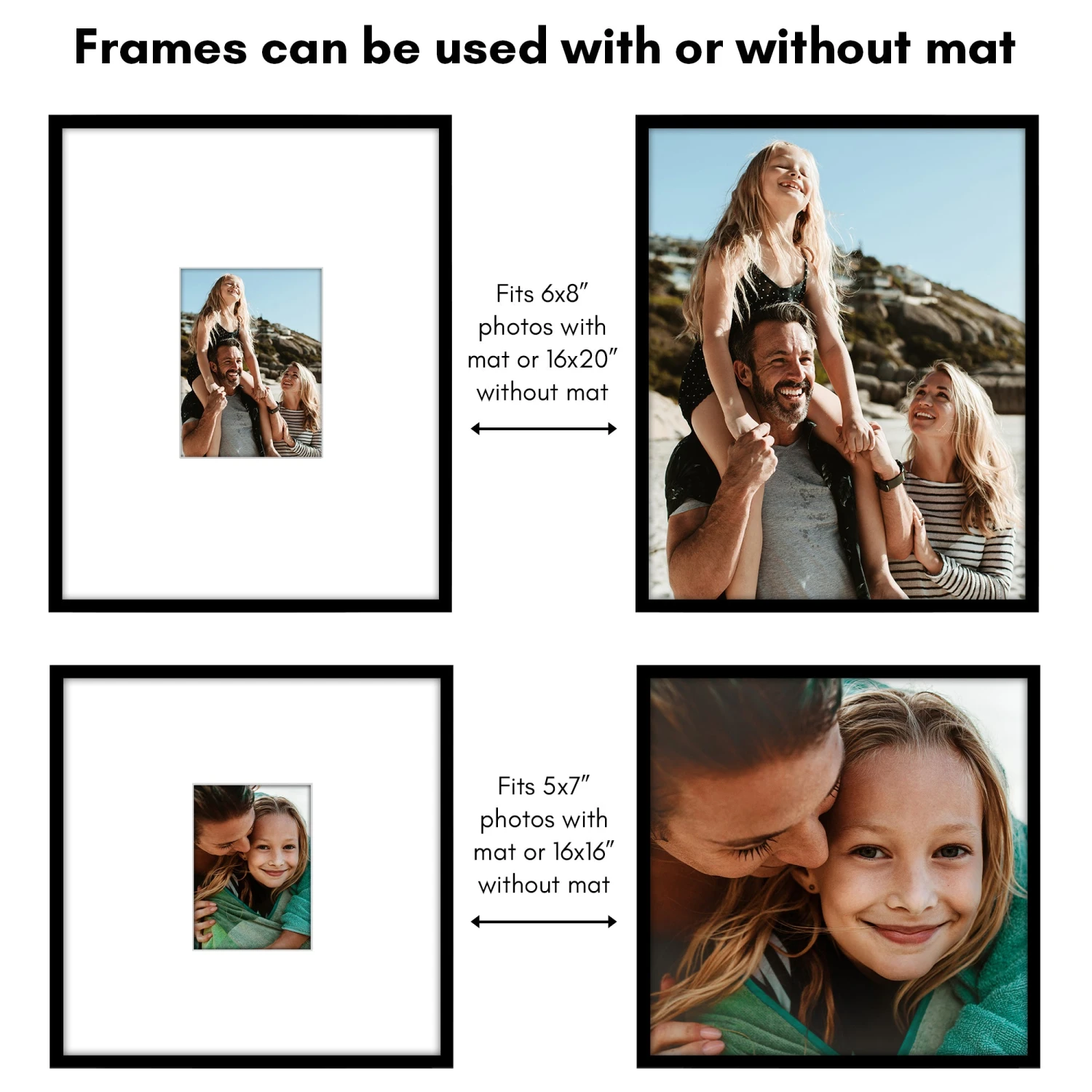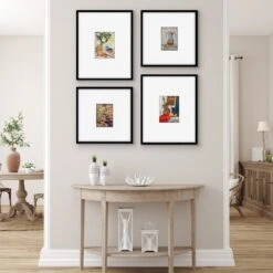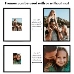 Showcase the moments you never want to forget with the Americanflat gallery-style picture frame set from our Streamline Collection. Crafted from durable material (PVC), and featuring slim molding with a sleek black finish, this gallery wall frame set includes two frames for 16×20 photos and two frames for 16×16 photos without mat or use as 6×8 photos and 5×7 photos with included mat. The polished plexiglass front keeps your memories protected, while the included hanging hardware offers flexible wall display options. So no matter where you place it, these timeless photo frames add an elevated touch, transforming simple spaces into something special.
