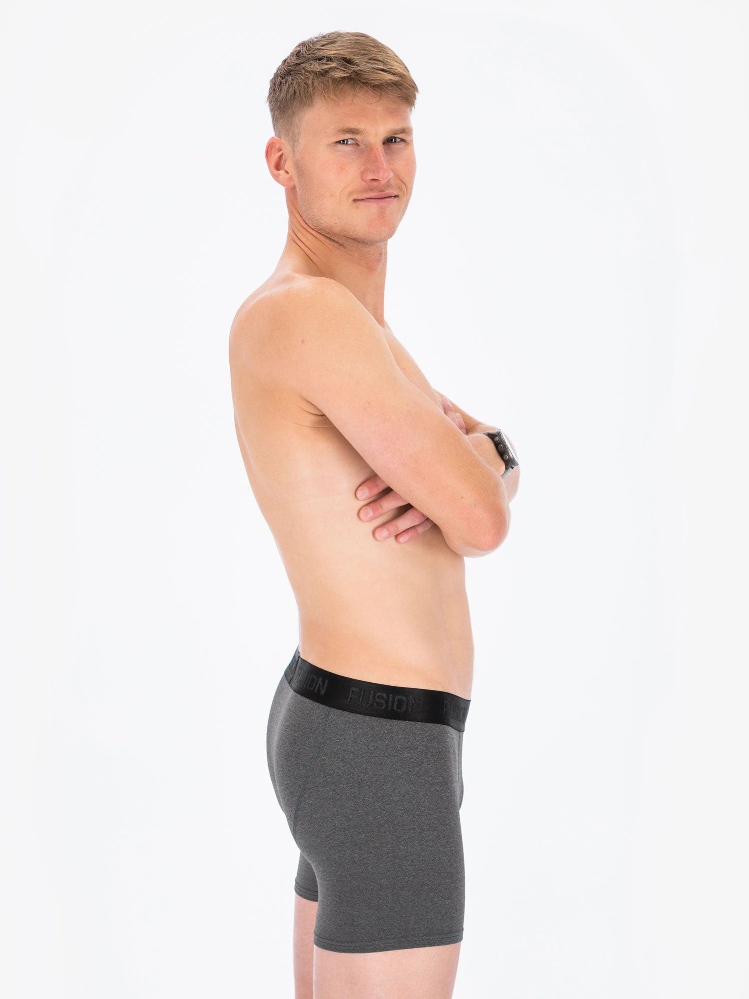 Sammensætningen af materialer gør, at det er et par boxershorts, der bliver, hvor de skal. De har bred hofteelastik med Fusion logo.