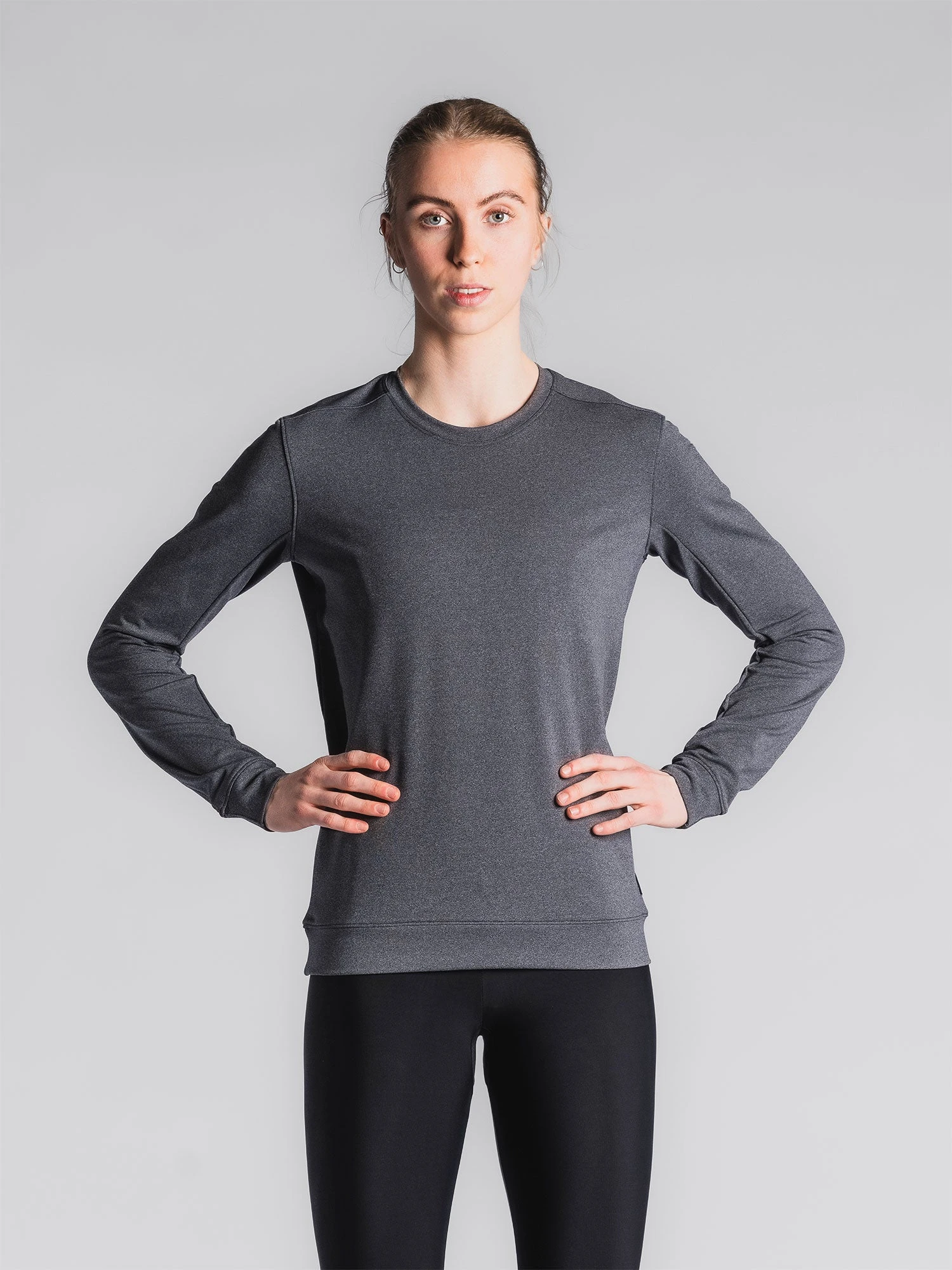 En let og komfortabel langærmet trøje, der ventilerer godt for overskydende kropsvarme, så du aldrig bliver kold og fugtig, hverken under eller efter aktivitet.