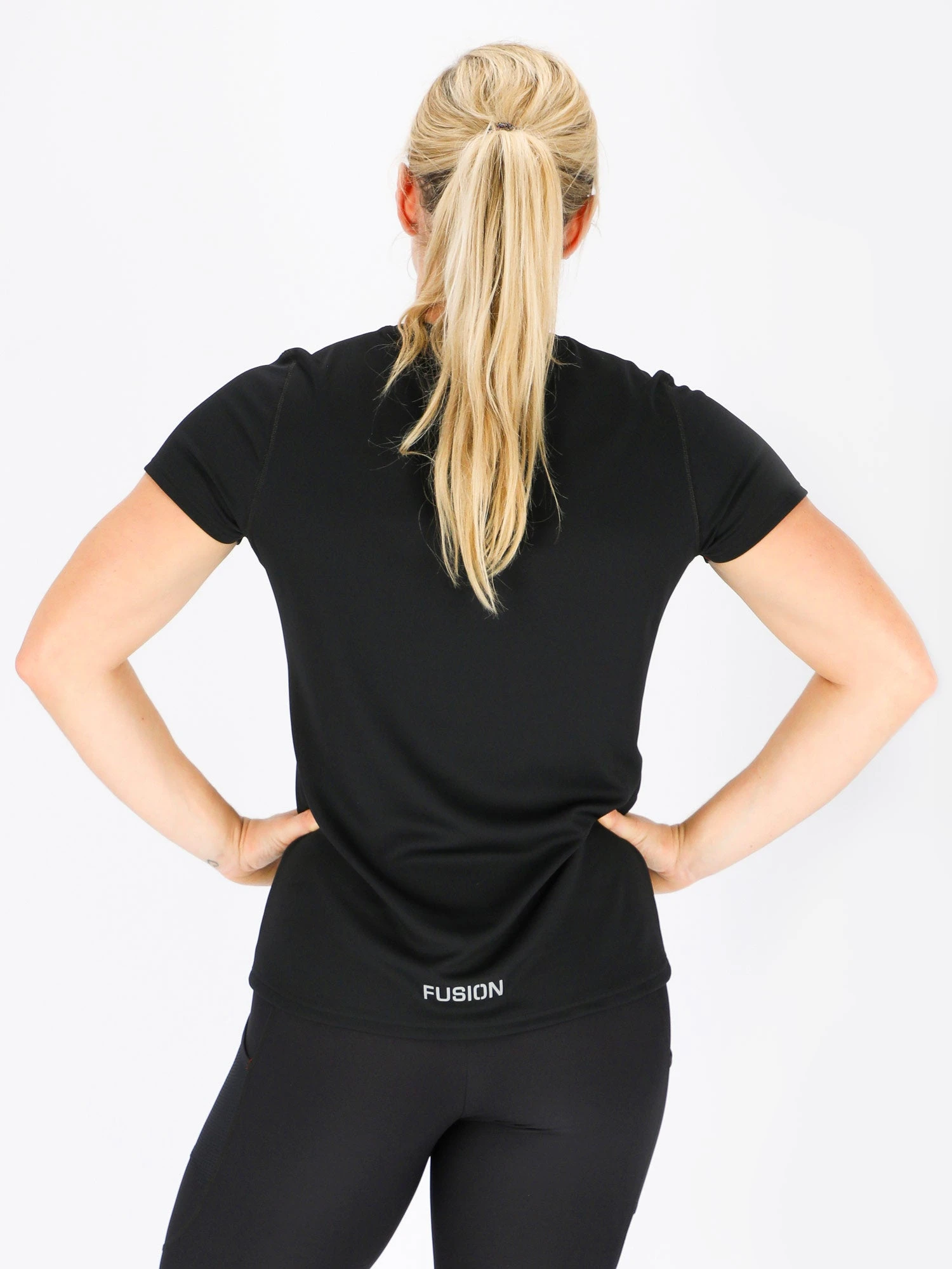 En let og ventileret T-shirt til både træning og konkurrence. Den er syet med bløde flatlock sømme i en teknisk kompromisløs metervare, som har en effektiv, aktiv svedtransport og hurtig tørreevne og som sikrer, at produktet ikke klistrer til huden under aktivitet.