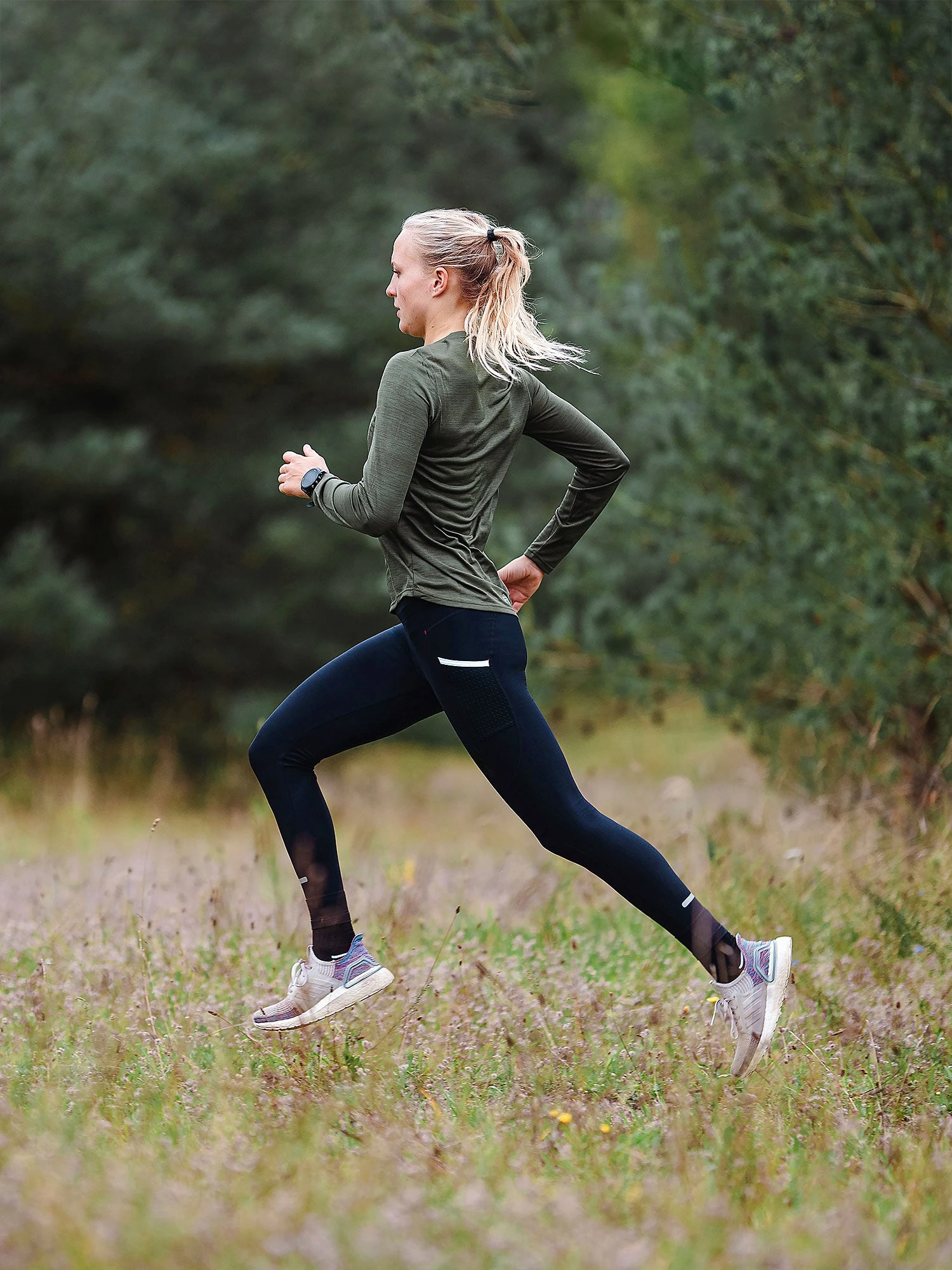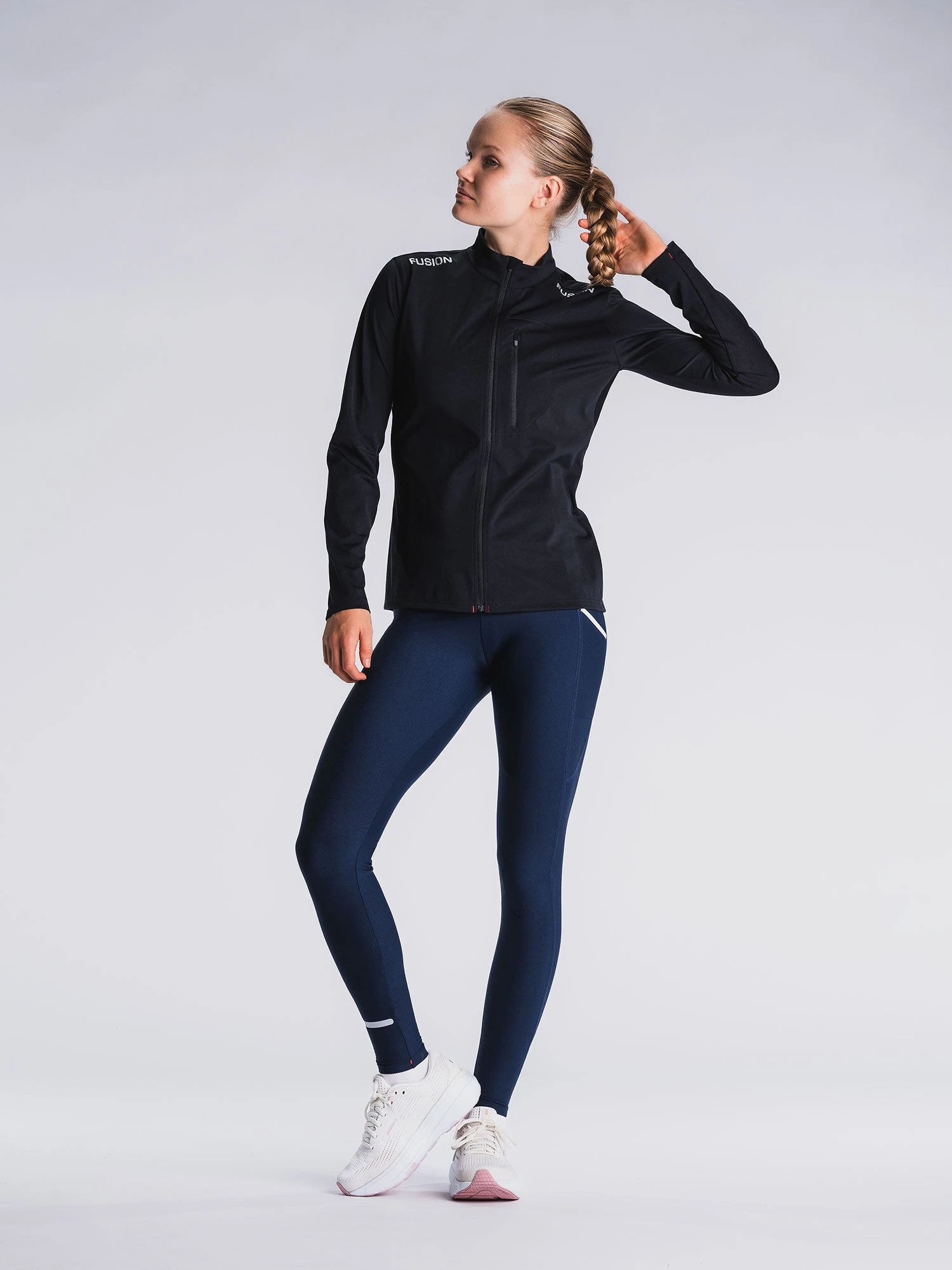 Long Tights har bred hofteelastik med justerbar snor samt de funktionelle Fusion lommer på lår, der holder indholdet tæt til kroppen uden at genere bevægemønstret.