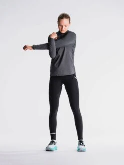 Det specielle tights materiale sørger for hurtig og god svedtransport, sÃ¥ du aldrig bliver kold og fugtig, hverken under eller efter aktivitet. Samtidig garanterer sammensætning og forarbejdning af tekstilet en optimal pasform, der holder over tid – og samtidig gør irriterende lynlÃ¥se overflødige.