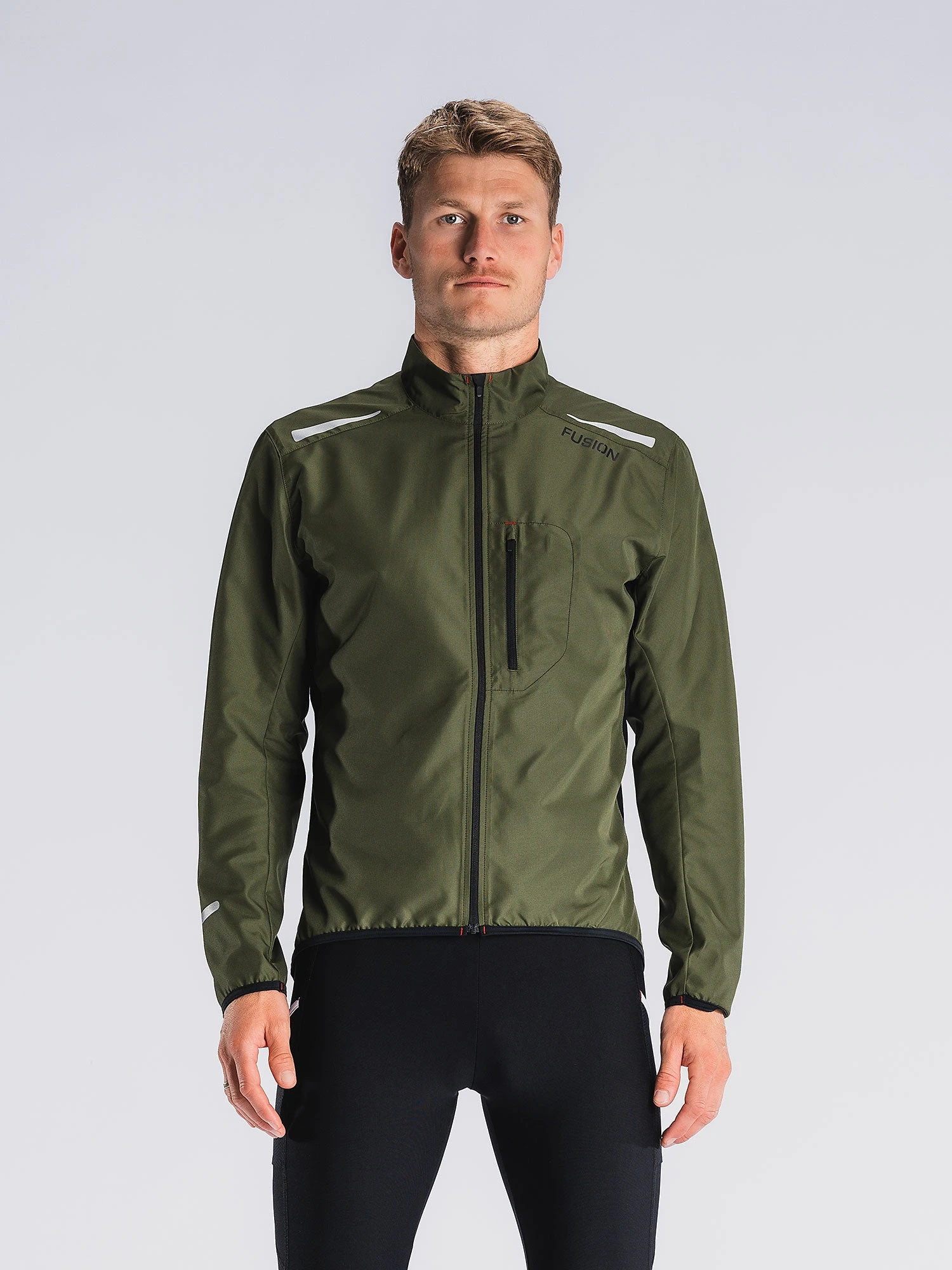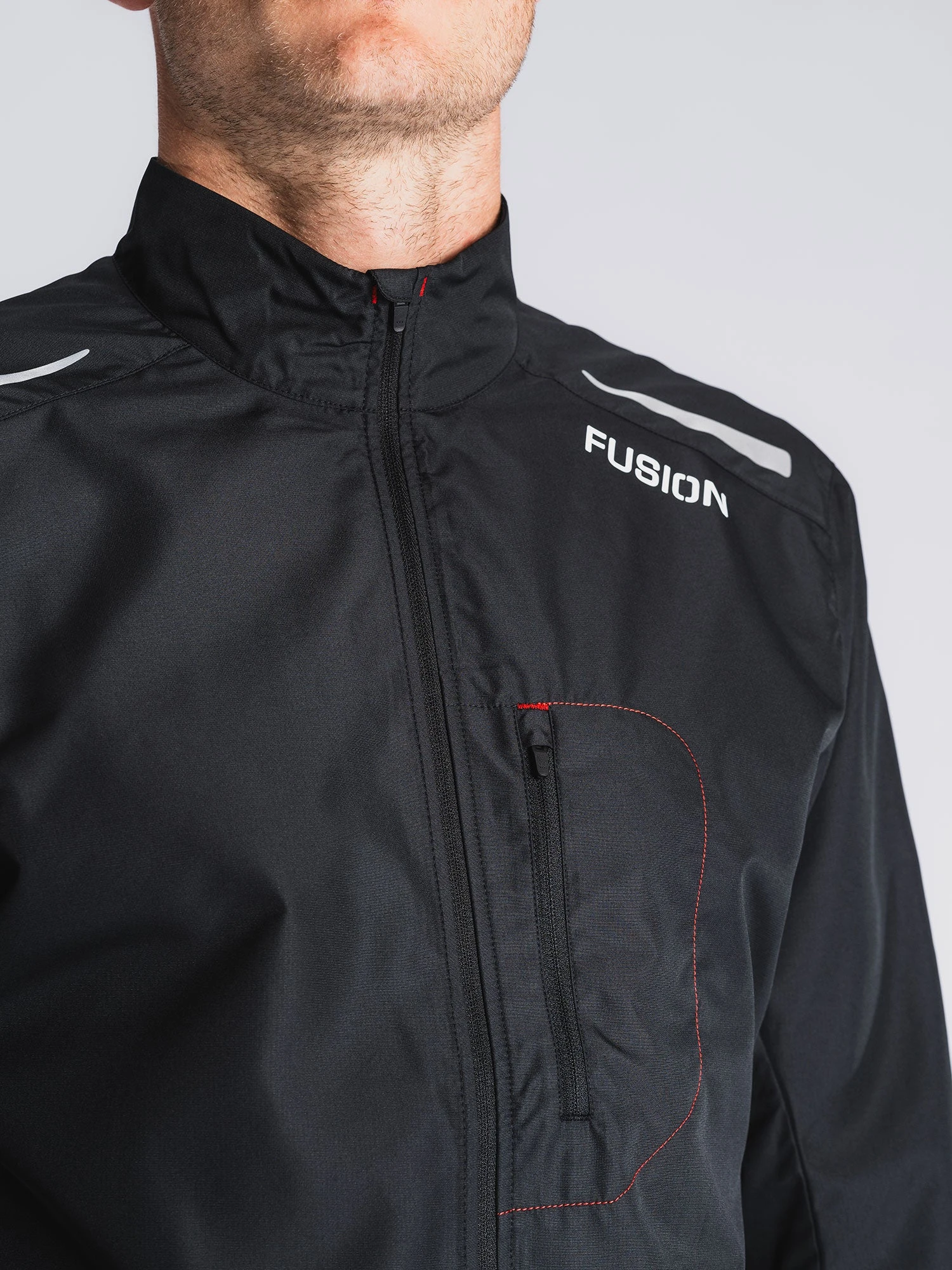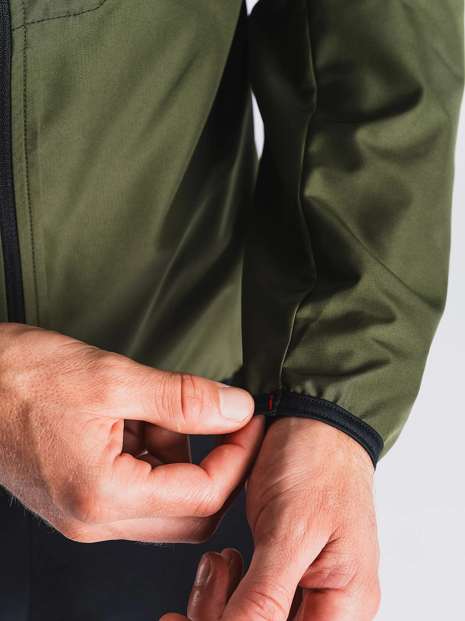 Jakken har en robust YKK lynlås med vindtæt bagside og lynlås-lukket front lomme med elastisk bagside, der tilpasser sig indholdet i lommen – f.eks. telefon og kort.