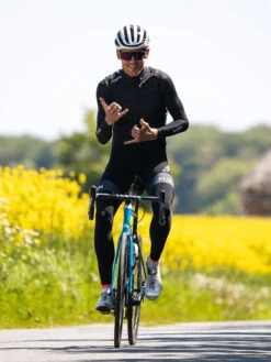 Dets tætvævede konstruktion er meget elastisk, så det ikke begrænser din bevægelsesfrihed, når du cykler. Ærmerne sidder tæt mod kroppen, og den opkradsede fleece-inderside holder dig komfortabel via moderat vindbeskyttelse og termoregulation. De silikone-belagte kantbånd sørger for, at de bliver, hvor de skal under hele turen.