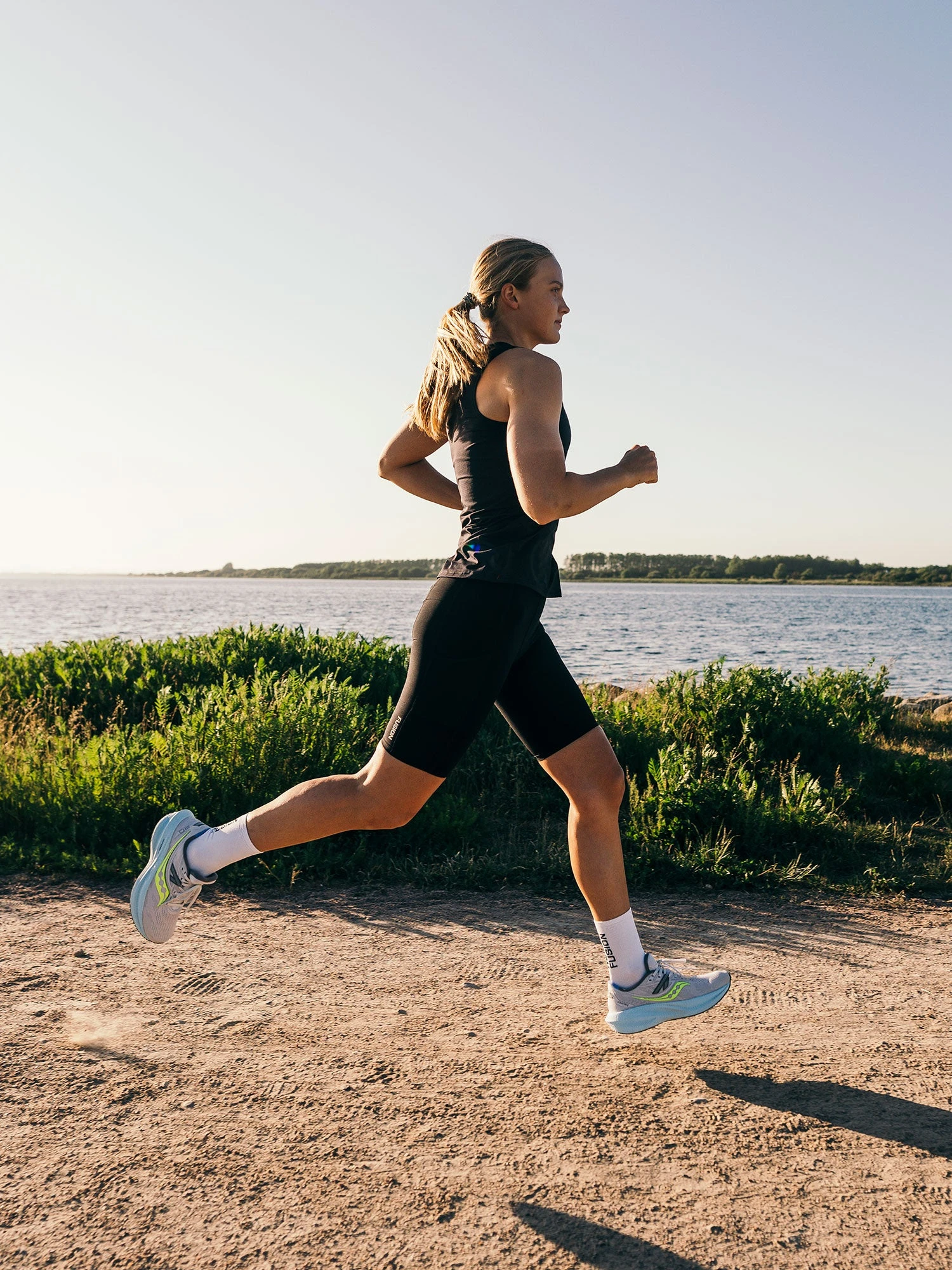 Et par superhurtige, korte løbe tights til konkurrence og træningspas – og til både kvinder og mænd.